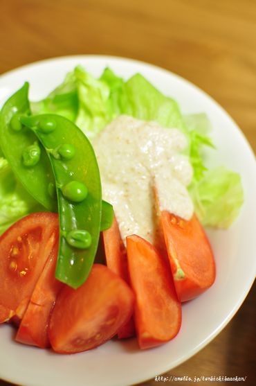 *生野菜のサラダを豆腐クリームのドレッシングで
