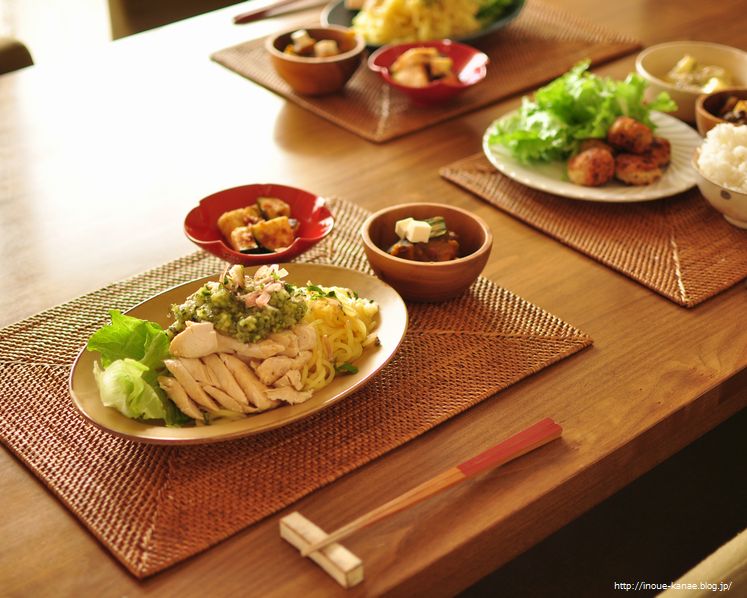ササミのレンチンオイル蒸しと、山形のだし、サマーレタスを乗っけた麺。
