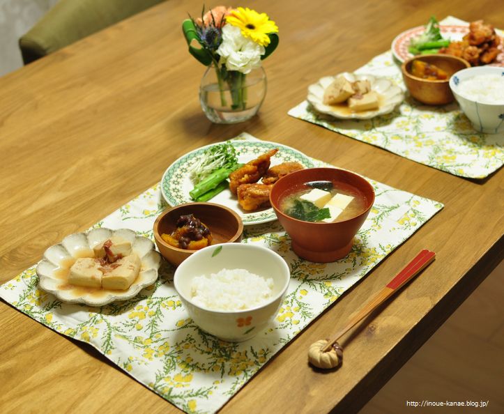 右上の唐揚げは昨日の晩ごはんだわ。