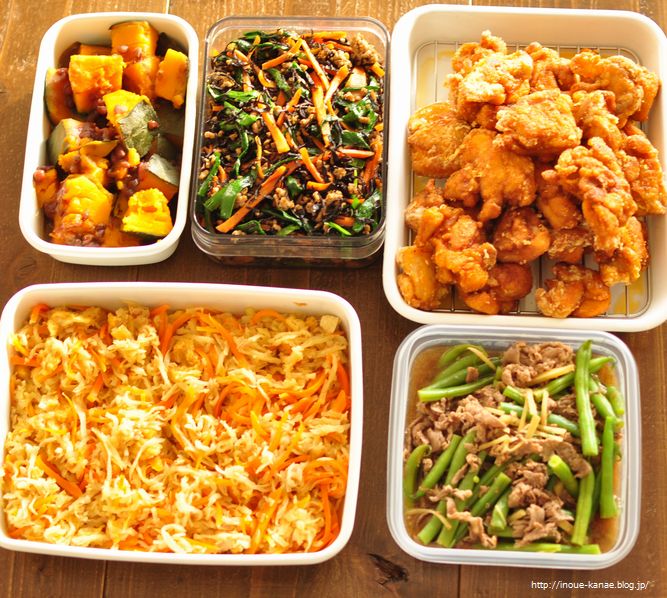 かぼちゃの小豆煮やら切り干し大根、ひじきの炊いたん、牛肉といんげんの炊いたんなどなど。