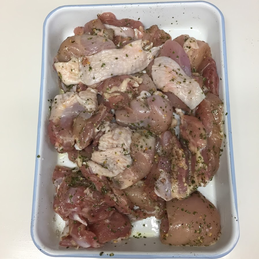 ※レモンでマリネすることで肉質が締まり、うまみが凝縮します。あらびきガーリックの代わりににんにくのすりおろしでも大丈夫です。