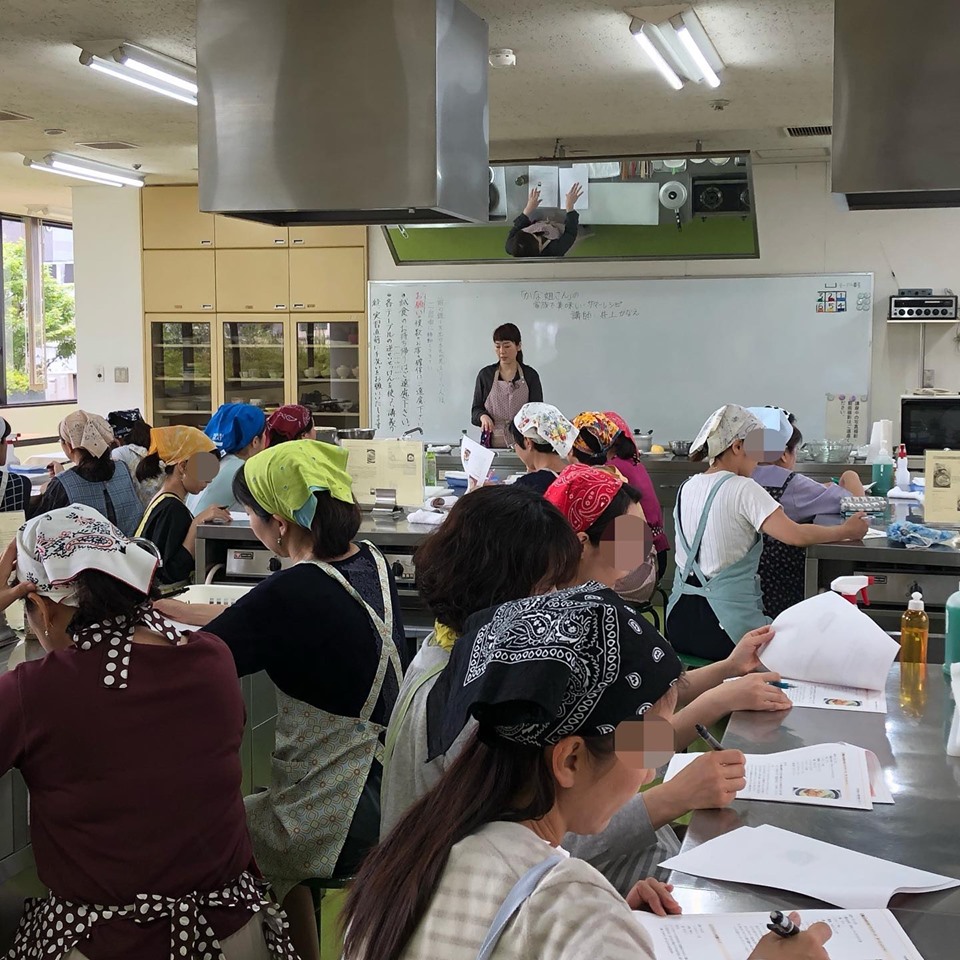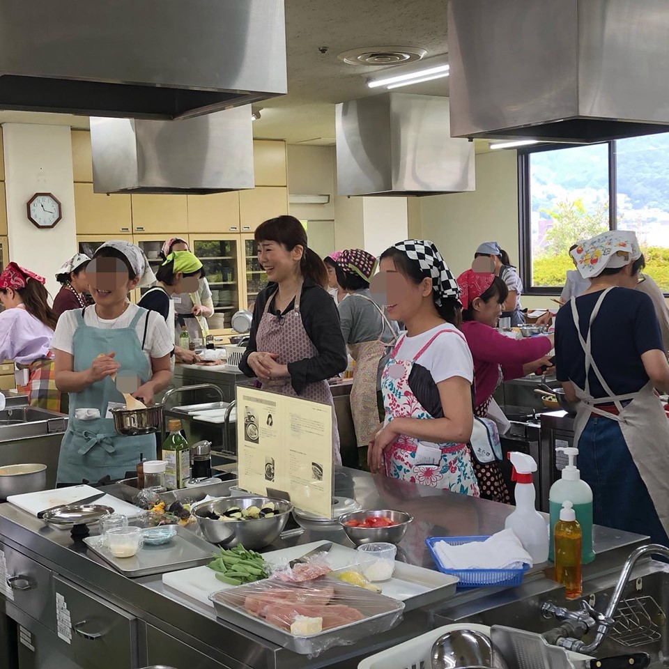 まずは1時間じっくり料理デモンストレーションを見て頂き、その後の1時間で班に分かれて調理実習、そのあとの1時間で皆さんでランチ会、そしてお片付けという3時間コースになっております。