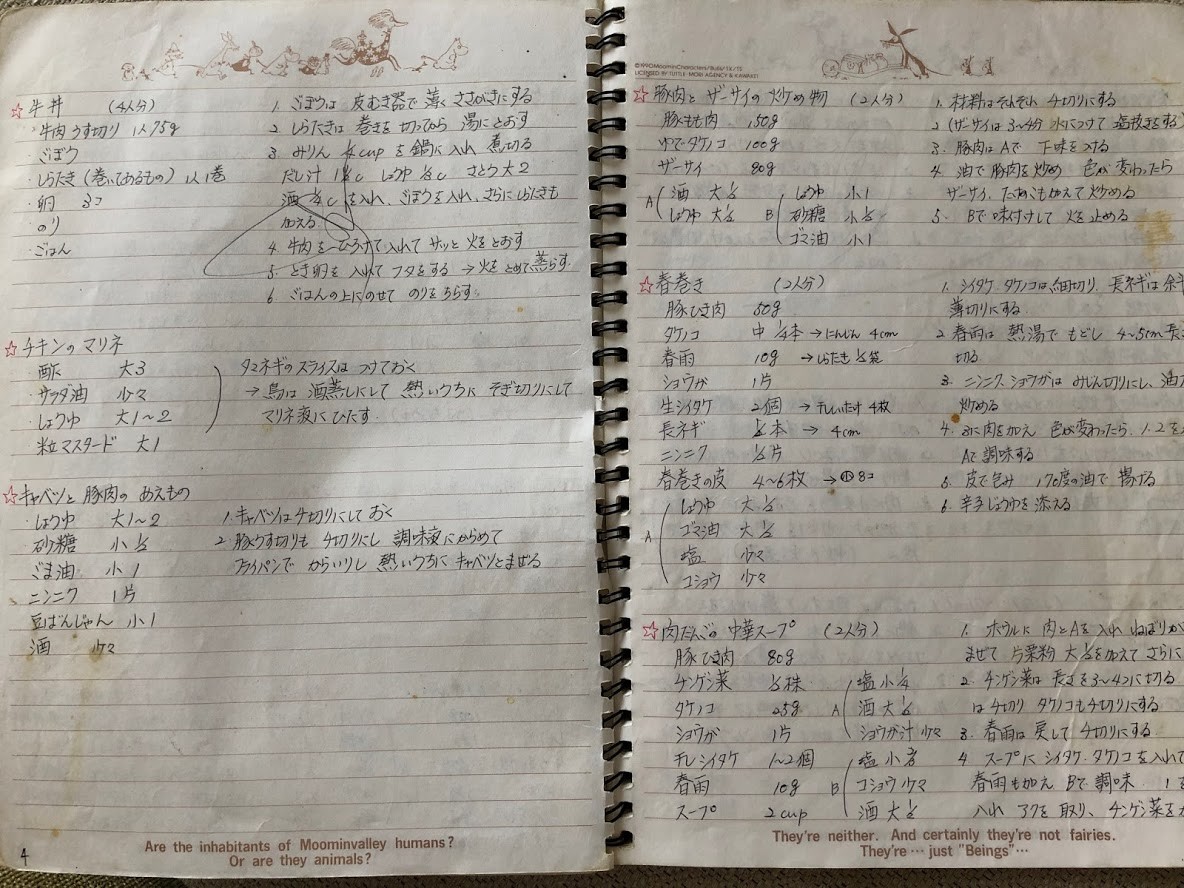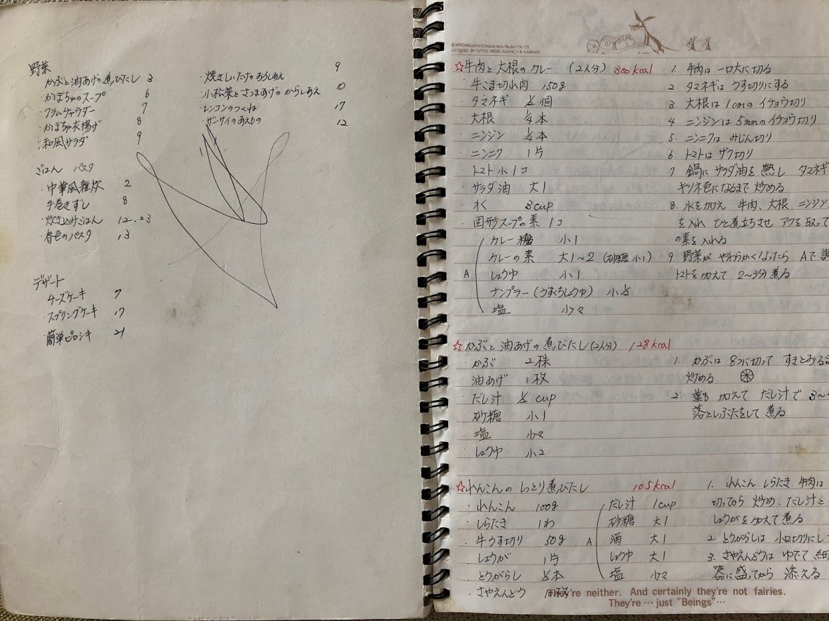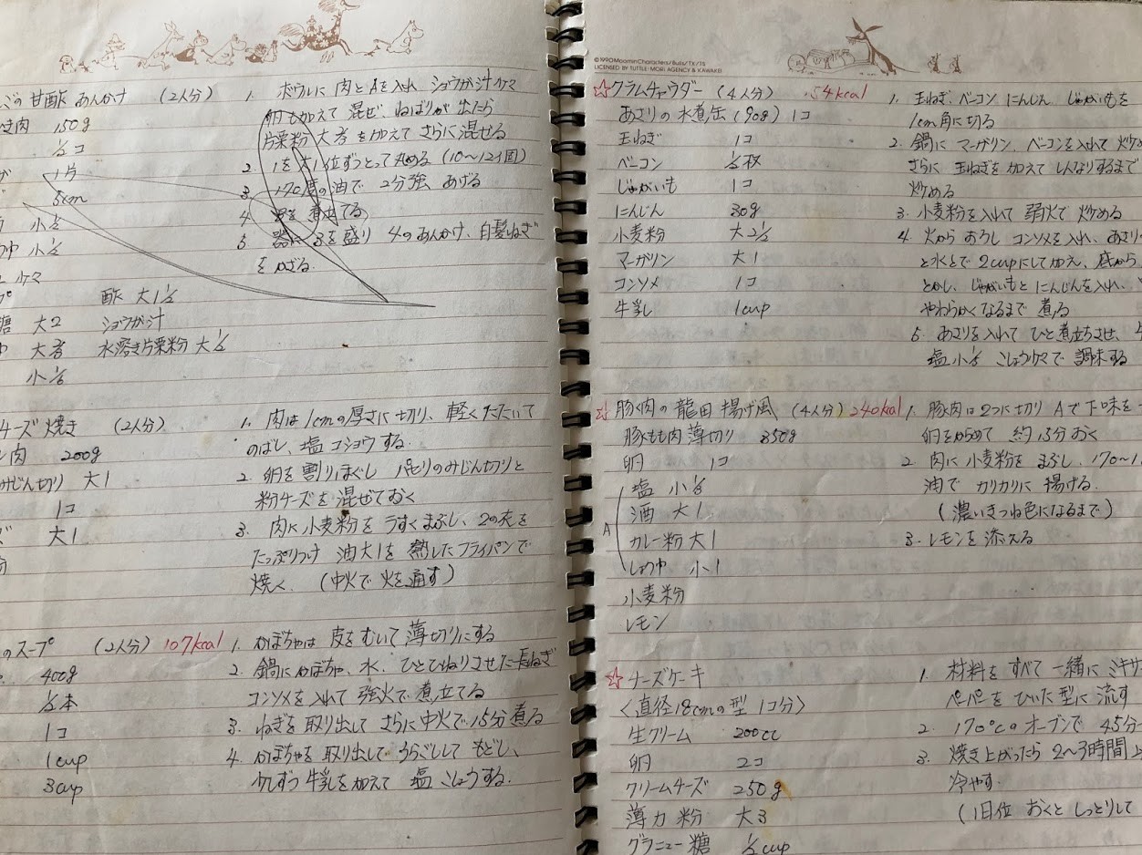 母に聞いたレシピをメモしたり、テレビで見たレシピをメモしたり、雑誌に載っていたものをアレンジしたり、自分で創作して美味しかったものもメモしてた。