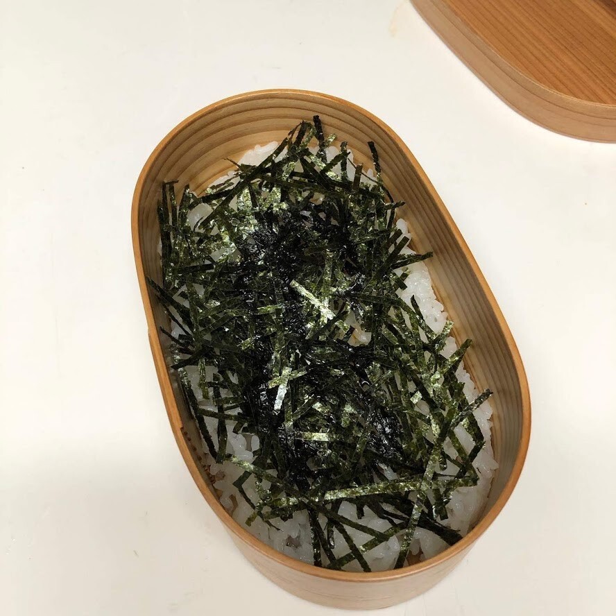 間にのりを挟む一手間でさらに美味しそう!のり弁のときにも刻みのりだと食べやすそうでいいですね😄いつもは一枚ののりをぺたっと置いているんですが、これ真似してみます🎵