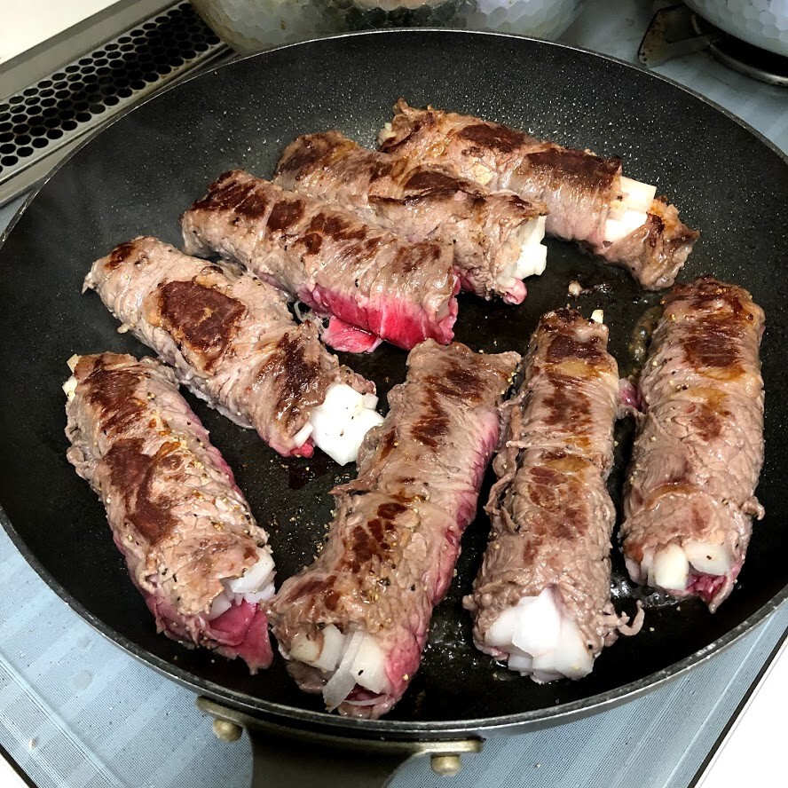 中まで火を通す必要はないので、外側に巻いたお肉だけしっかり焼くことに集中すればOKです。