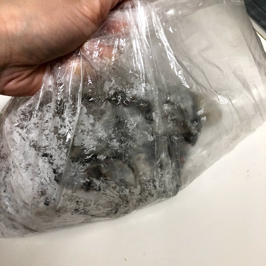 そして次の工程に移る際、ポリ袋の中にどさっと入れると汁気まで入ってしまうので、面倒でも1尾ずつお箸でもち上げてポリ袋へ。