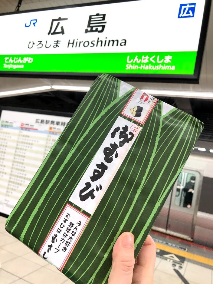 さてさて、広島への旅2日目の朝は、ホテルで朝食はとらず(前にオットと一緒に泊まった時はバイキングをつけたんだけど、かなりボリュームたっぷりで美味しかったよ)、前の日の晩にコンビニで買っていたバームクーヘン1つを2人で分け、珈琲を飲んで出発!