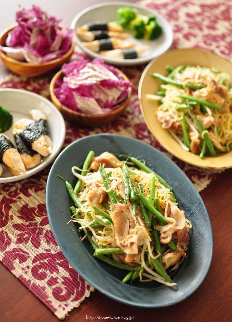 *塩ガーリック焼きそば(いんげん、もやし、豚バラ)