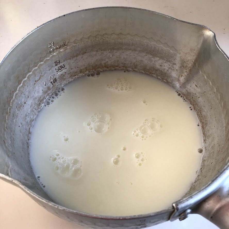 市販のマシュマロを牛乳で溶かして作る、簡単なおやつです。