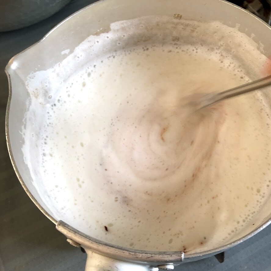 溶けてきたらチョコを入れてこれも溶かし、、、