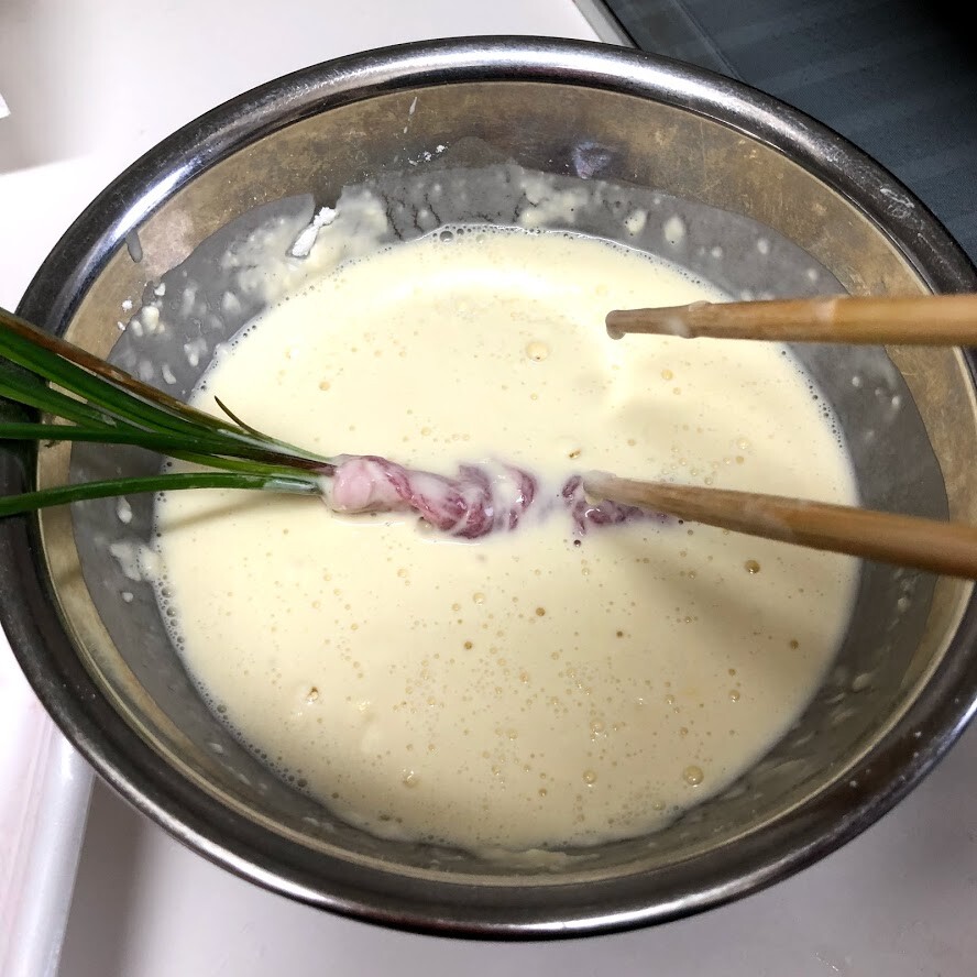 天ぷら衣にくぐらせて、