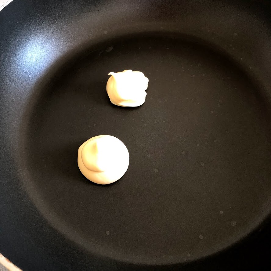 マヨネーズが油代わりになりますので、マヨネーズをフライパン全体に広げてね。