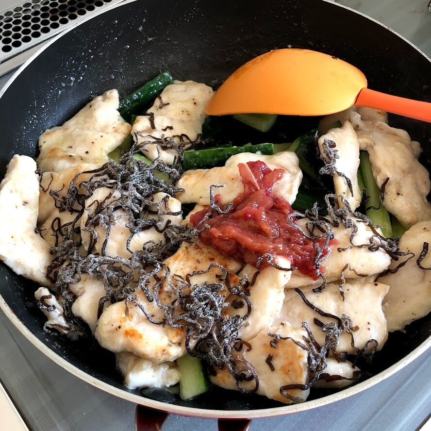 【さっぱり系☆胸肉ときゅうりの梅塩昆布炒め】