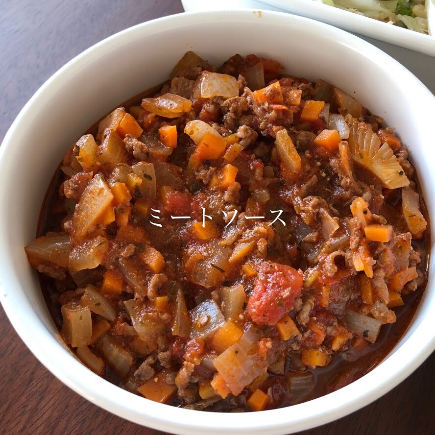 ミートソースはお昼の残りをしっかりめに煮詰めておいたもの。