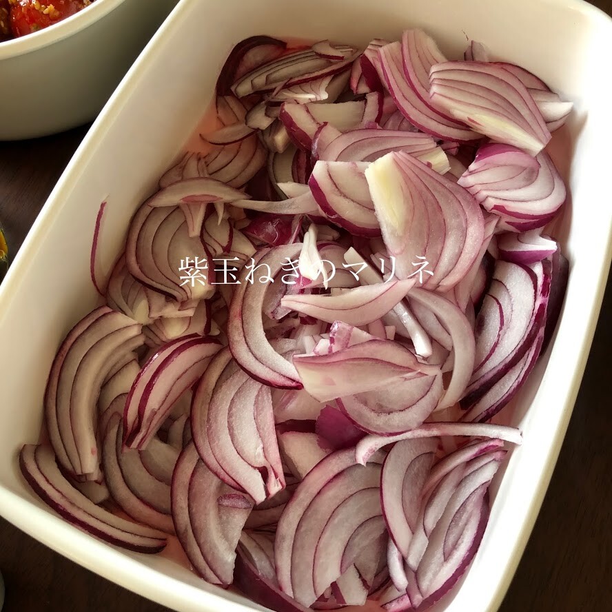 紫玉ねぎはスライスしてすし酢をふりかけただけ。