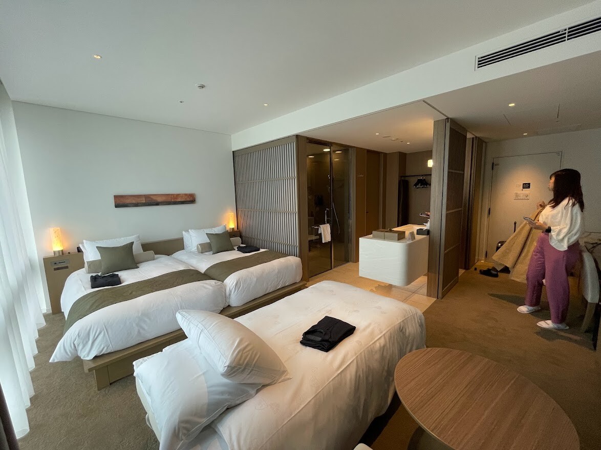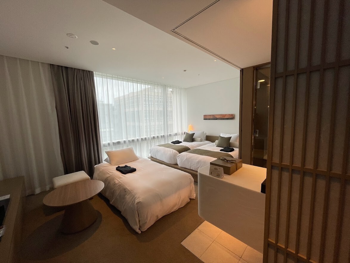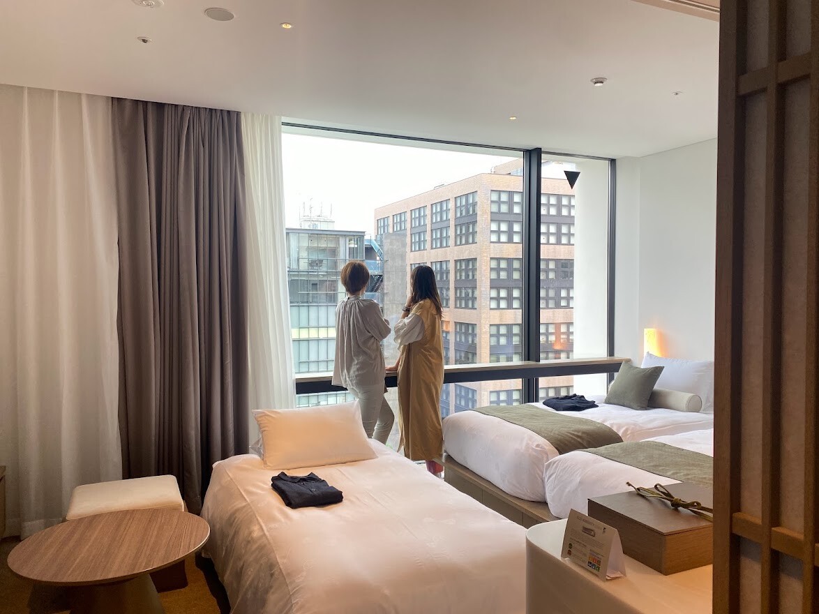 お部屋は3人なので、エキストラベッドが入っている分少し狭くなりますが、窓が大きくてめっちゃ明るくて開放感があってきれいなお部屋でした。