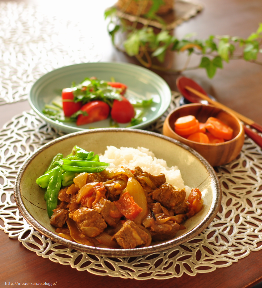 見た目ゴロゴロの牛肉ですが、一切煮込まずに作るちょっと変わったカレーにしてみました。
