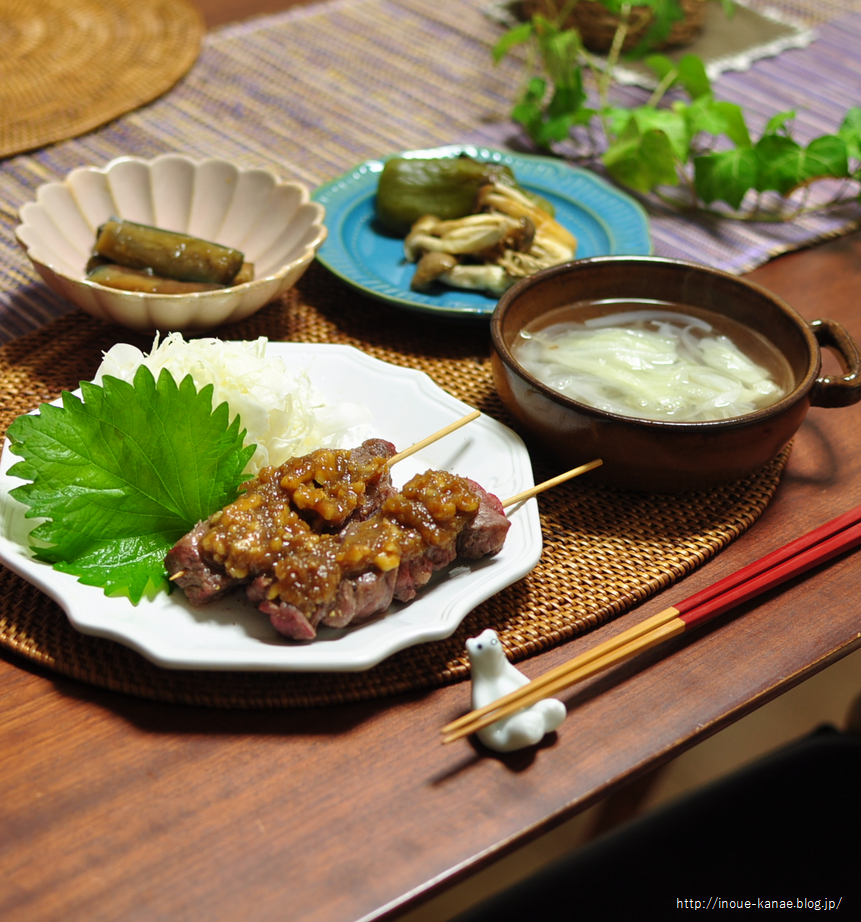 スープは、鍋に湯を沸かして、スライスした新玉ねぎを入れて(煮込まずシャキッと仕上げ)、塩、かつおぶし、バターで味を調えただけ。