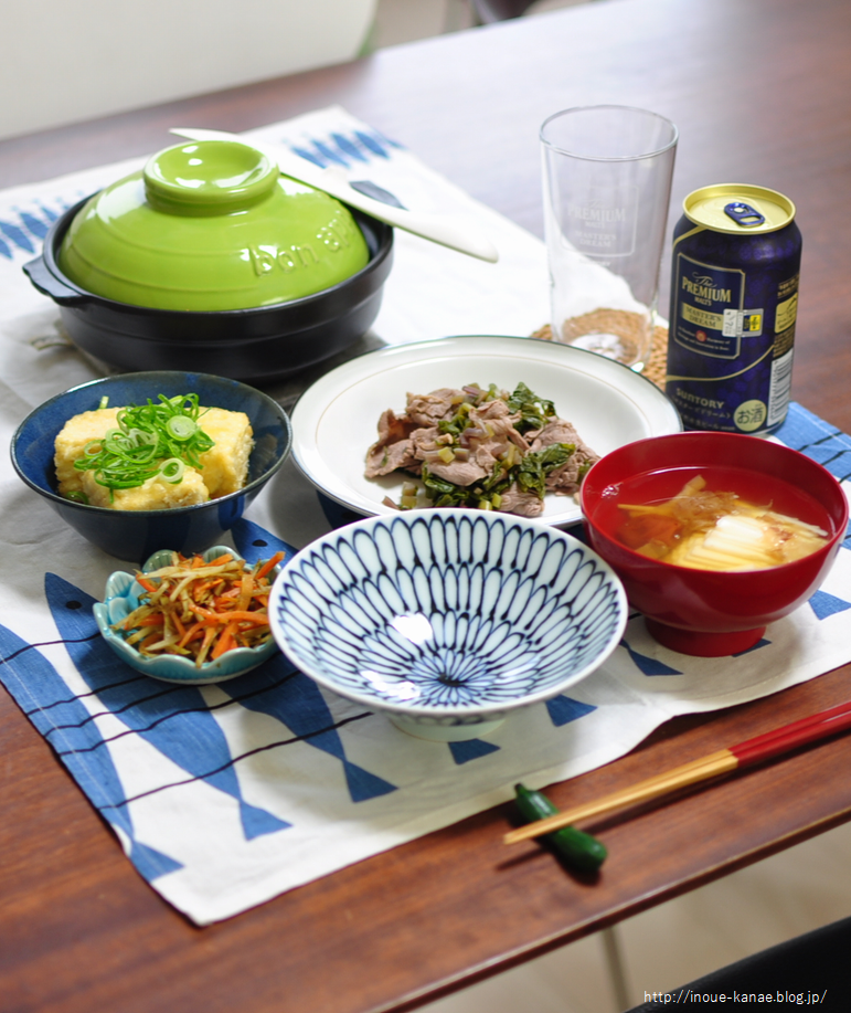 それをしゃぶしゃぶした牛肉と和え、お醤油を絡めています。