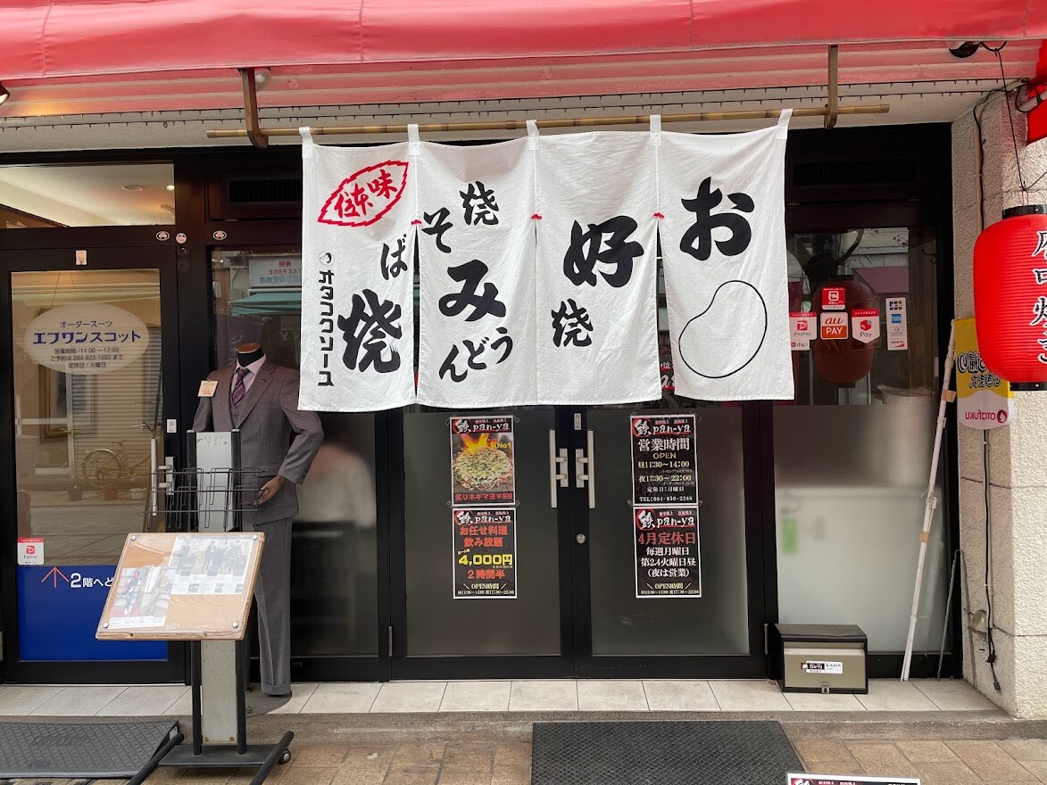バスの中でサチャンにお好み焼きのお店をリサーチしまして、せっかくやから(オバちゃんの口癖)いーちゃんに福山の美味しいものを食べてもらいたくて、広島焼きか府中焼きかってなって、まだ食べたことのない府中焼きのお店に行ってみることにしました。
