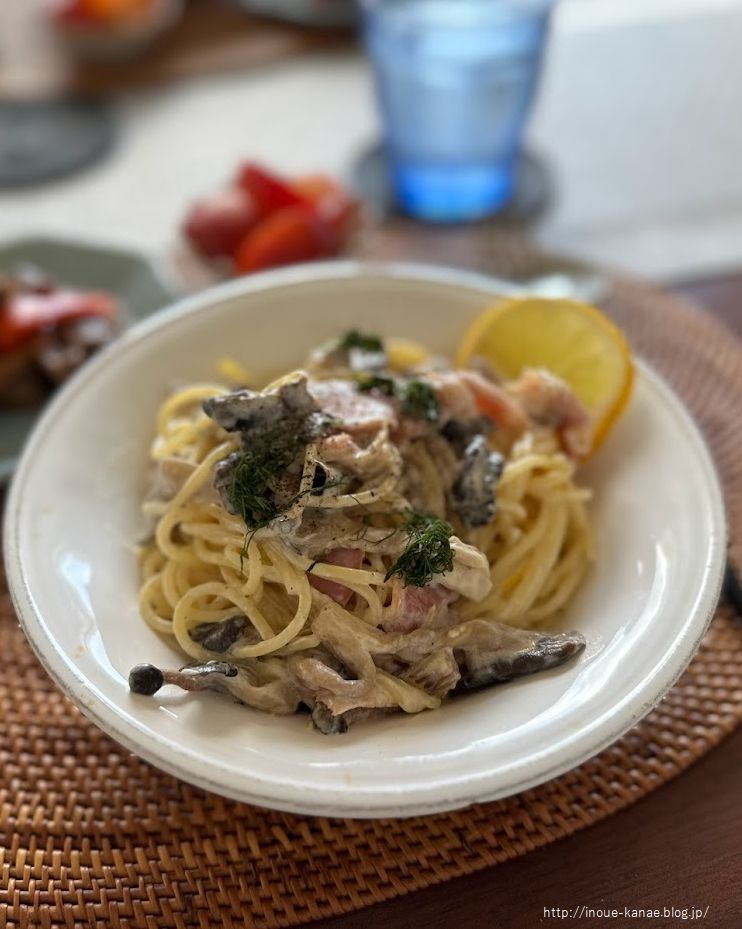 【きのことベーコンのレモンチーズパスタ】