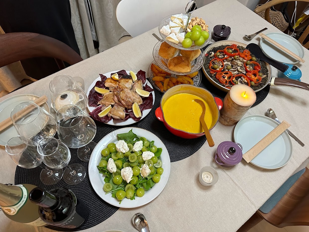 というわけで週末土曜日、なーさん、なーさんの彼氏、オット、すぅさん、わたしの5人というメンバーで我が家でハロウィン晩ごはんをしました。