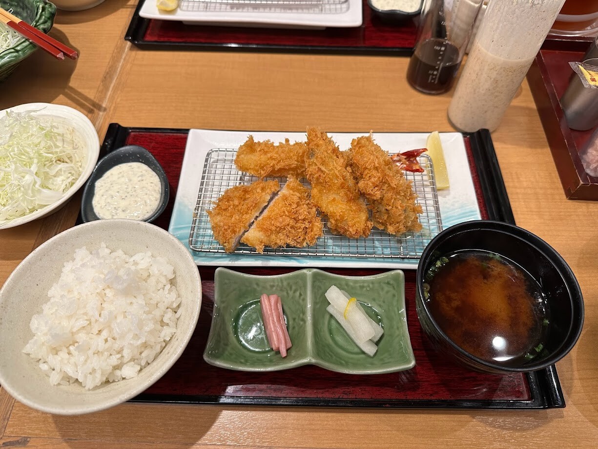 帰省していたなーさんととんかつ屋さんで晩ごはん食べた日。