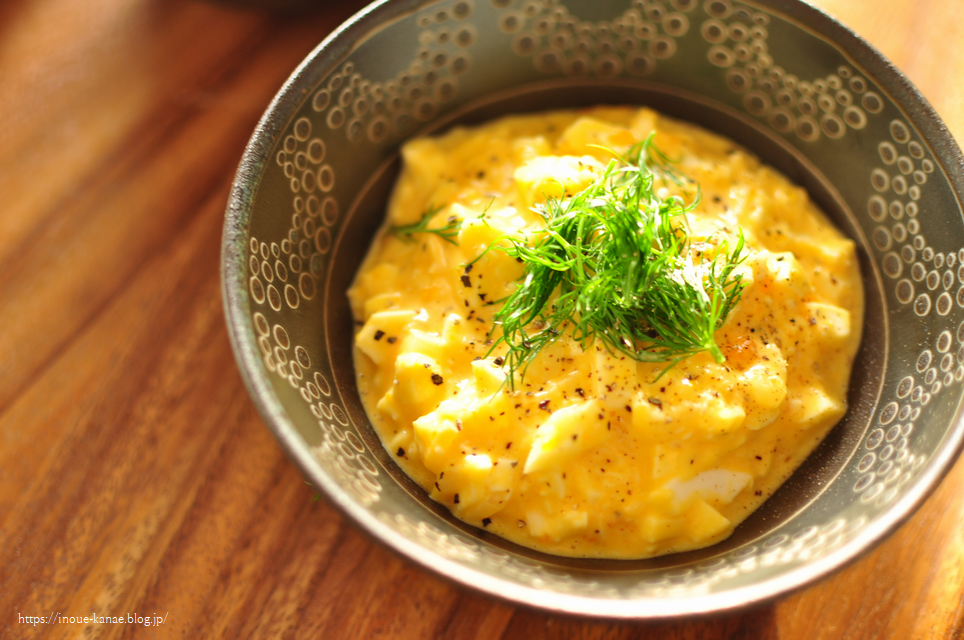 半熟のゆで卵でとろける卵サラダの隠し味にも使ってみました。