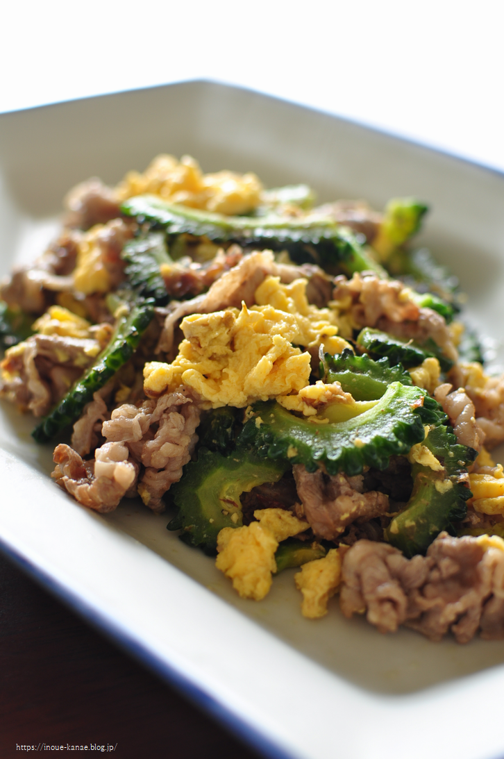 ゴーヤと牛バラ切り落とし肉のチャンプルー的な。