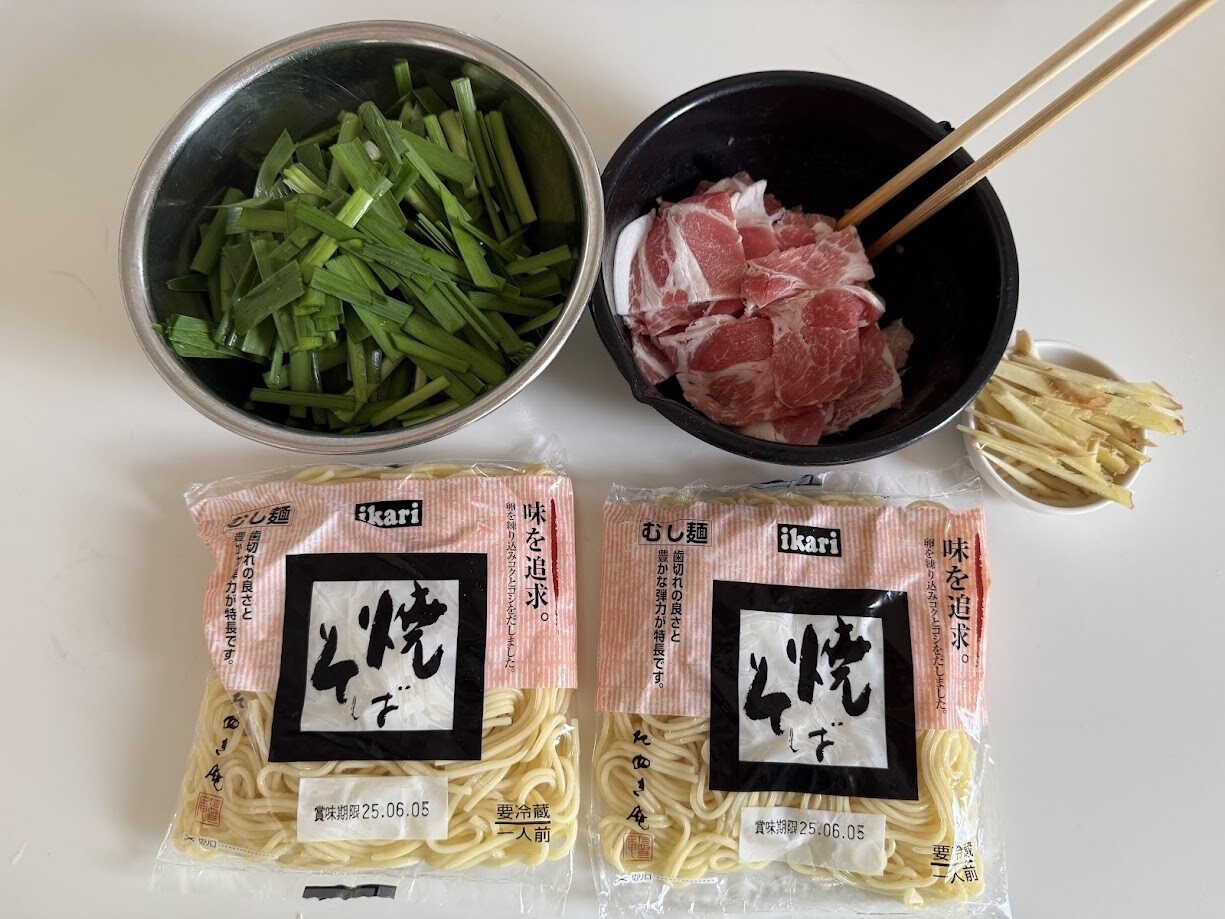 あとは豚肉、ニラ、焼きそば用の蒸し麺など。