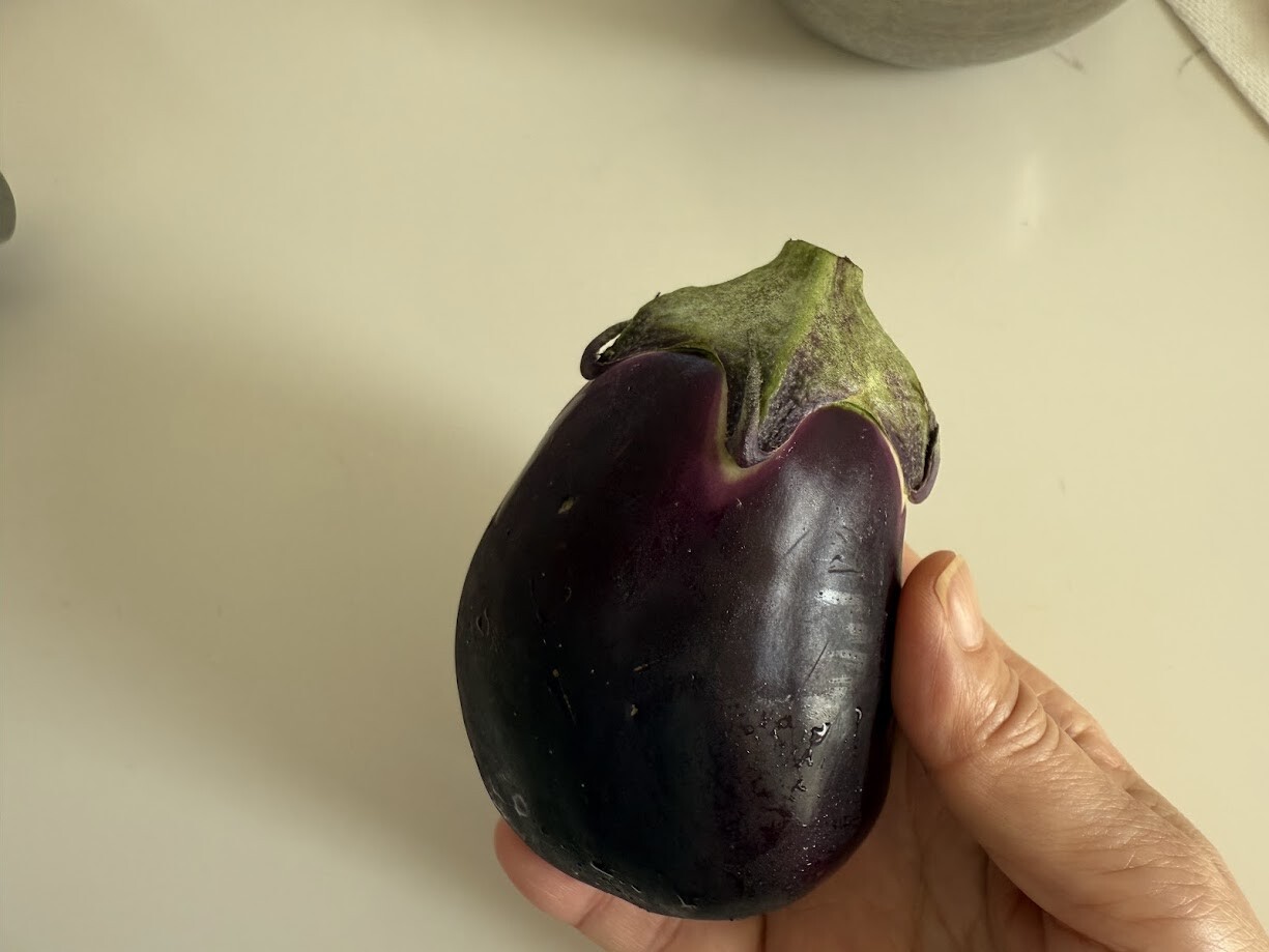 手に持つとずしっとした重みがあり、めっちゃ水分がパンパンに詰まってる!って感じのおナスです。