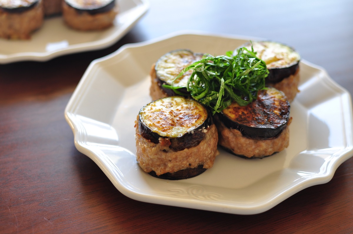 ジューシーな肉だねをたっぷり挟んだナス!