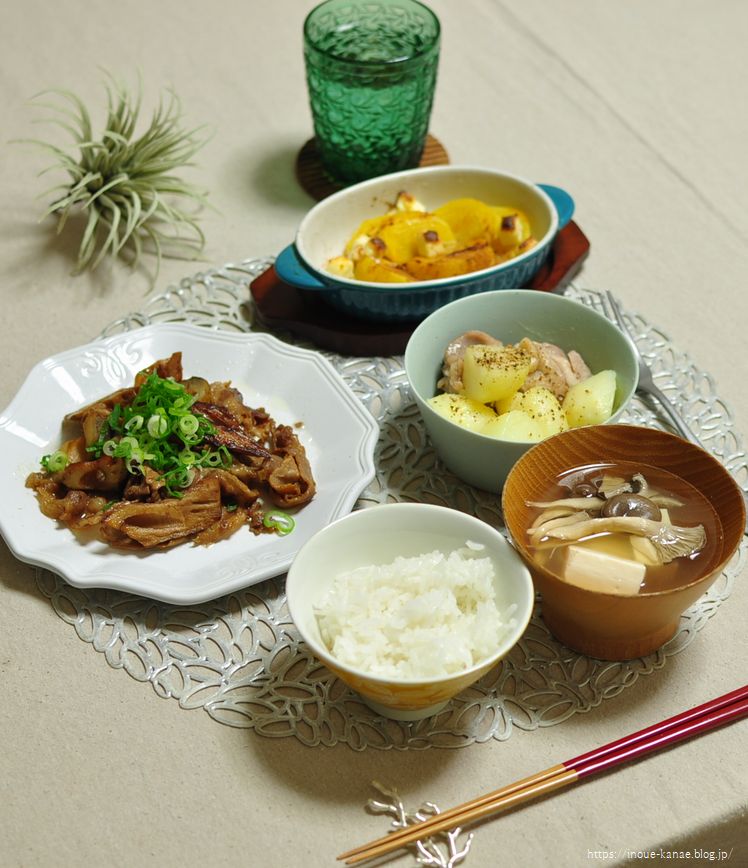 一昨日の晩ごはんは、お弁当用に半分だけ使った残りの鶏もも肉とじゃがいもを使って、