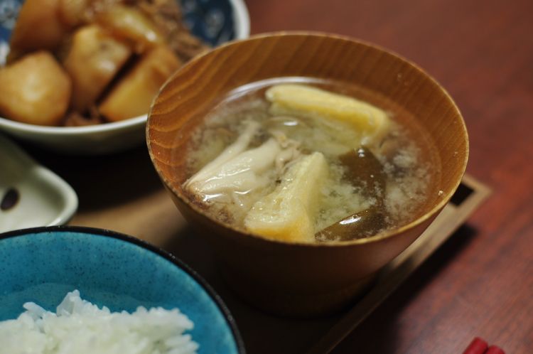 *きのこと油揚げのお味噌汁とごはん