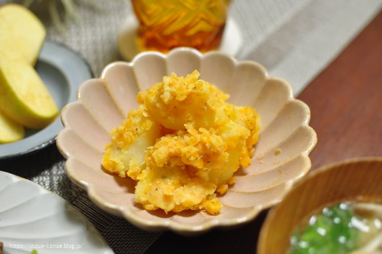 なんか軽めにもう一品あるといいなと思って作った、ジャガイモとレンズ豆のホットサラダ。