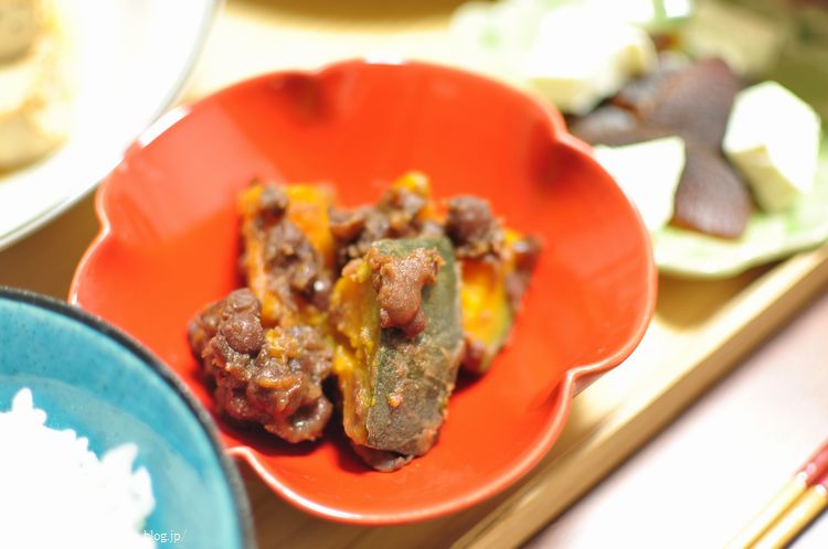 牛バラの切り落とし肉(アメリカ産ビーフで脂がいい感じについている部位。コクがあって柔らかで旨い)と木綿豆腐をさっと煮たおかず。