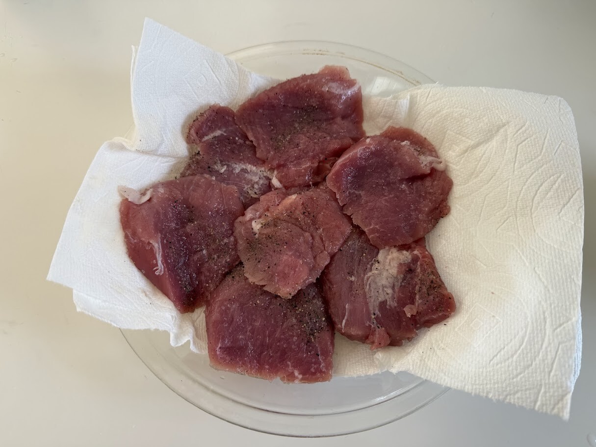 ドリップが出ていたらキッチンペーパーで拭きとります。