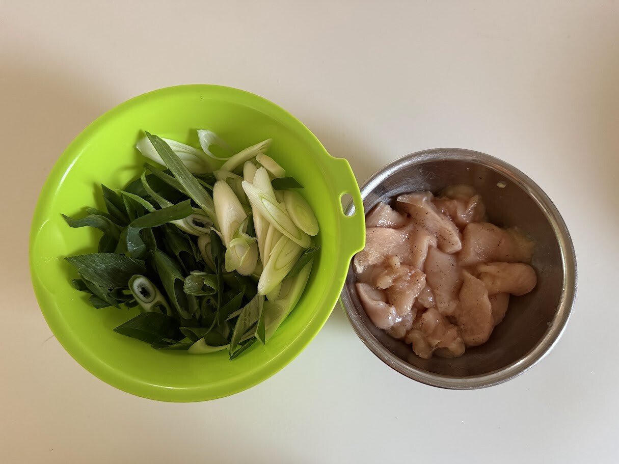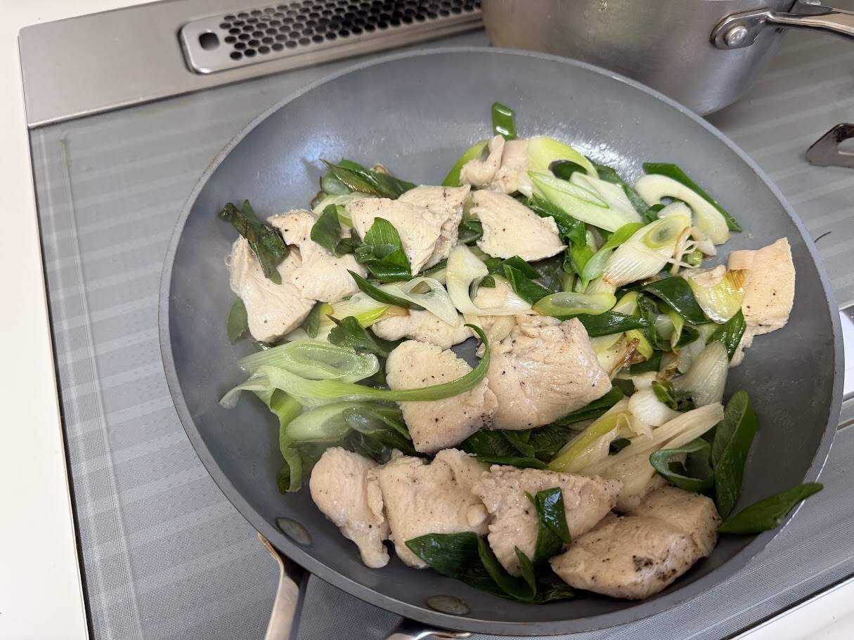 昨日の晩ごはんは、またまたオットがジムの日だったので鶏むね肉と、先日の岩岡ネギを使って一品。