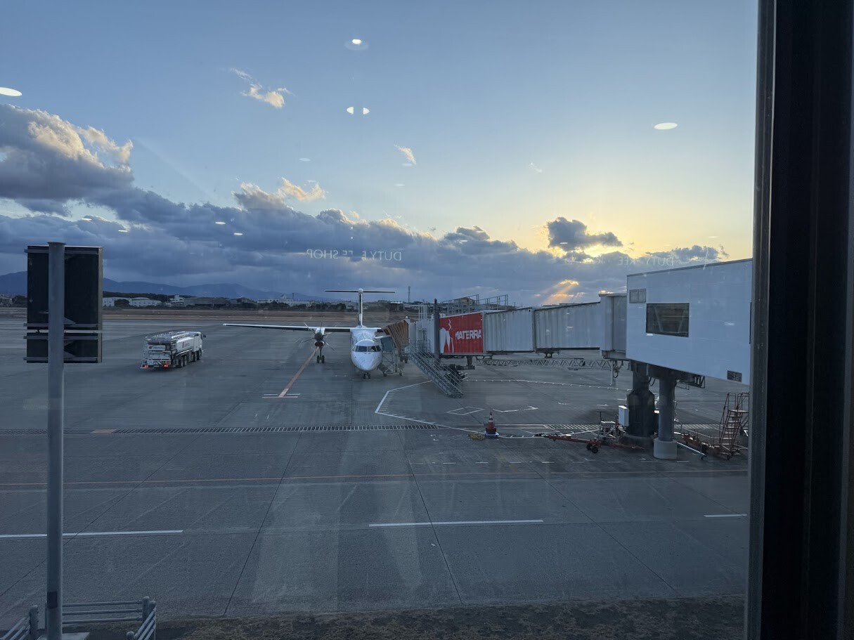 帰りはちょうど夕日が沈む時間で、窓からの景色にうっとりしました。