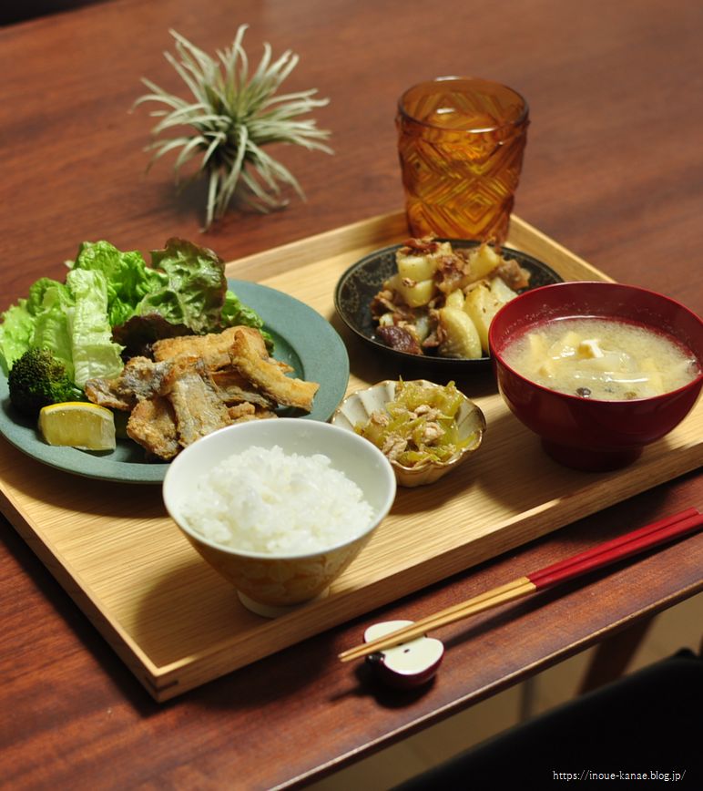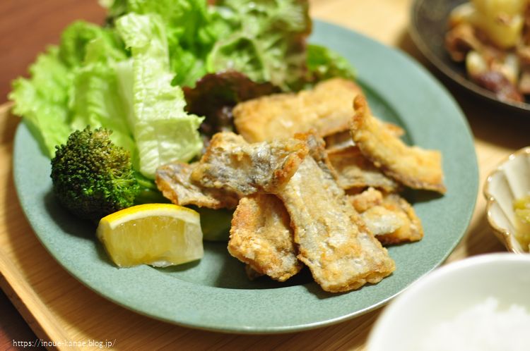 メインは太刀魚のフィレー(生協で冷凍のが売ってる)でから揚げです。