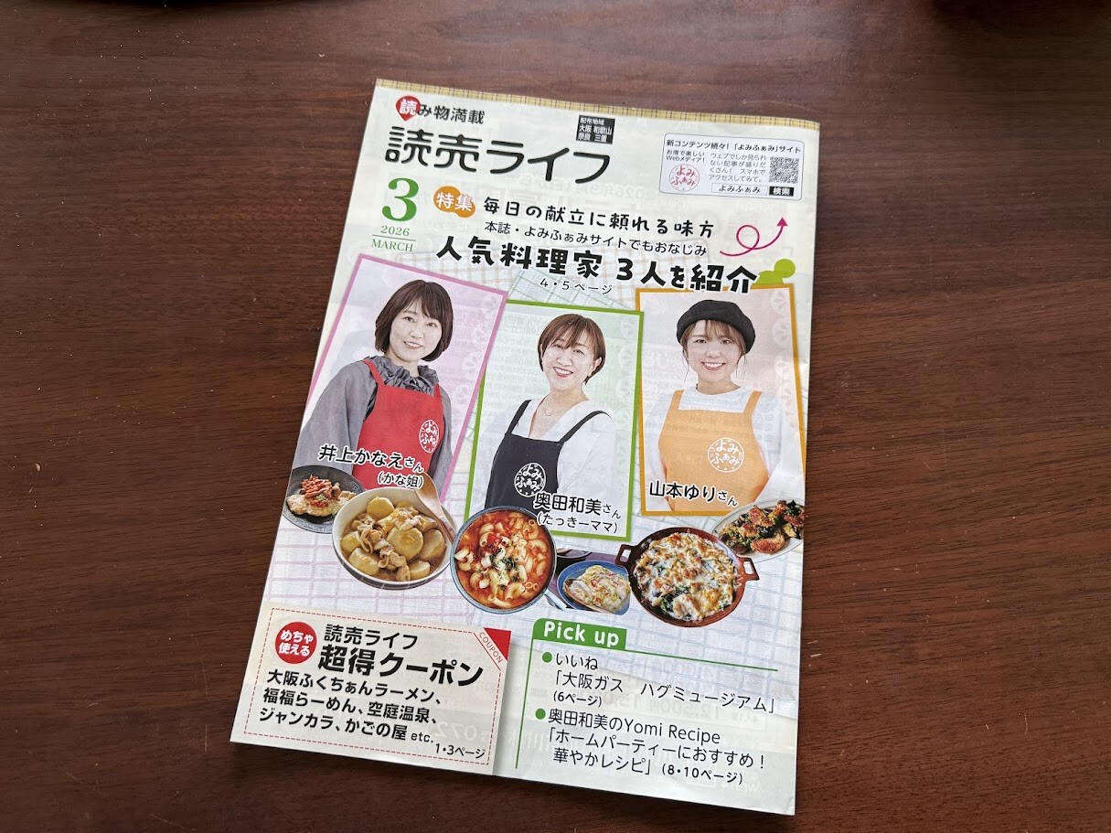 いつもレシピの連載でお世話になっている読売ファミリーさんなんですが、月に一度「読売ライフ」という冊子を発行していて、こちらは読売新聞を購読されていらっしゃるご家庭に集金の時とかに配られる無料の冊子なんですが(わたしが小学生の時の愛読冊子w←実家も読売新聞だったので)、こちらの3月号の表紙に・・・