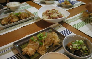 体力勝負の1日 本日の晩御飯 *てんきちの好物、鶏胸天と玉ねぎの甘酢煮。(ラビーさんのレシピはこちら ) *海老イモ団子の舞茸あんかけ *レンコンの柚子胡椒サラダ *みかん わたしは2枚が精一杯なんだけど、てんきちは今日これを4枚食べ、さらにわたしがお腹いっぱいだー・・・とふ 2005年11月09日 カテゴリ:日々のつぶやき