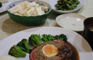納豆を食べる2歳児を観察 本日の晩御飯 *ミートローフ ブロッコリーのソテー添え(うちの定番、パティシエママのレシピはコチラ )ワンプレートで。 *長芋のお漬物 柚子風味ならぬ、かぼす風味で(お酢研仲間だったBETTYさんのレシピはコチラ ) *ビール好きに捧ぐ枝豆(Mishさんのレシピ 2005年11月02日 カテゴリ:野獣すぅ