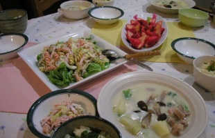 じーじの爪について考える 本日の晩御飯 *牛さんと下仁田ネギとレンコンのオイスター炒め *サトイモの胡麻マヨ和え(ニーナ41さんのレシピはこちらです ) *大根の皮の梅風味炒め *なんかキラキラ光ってるけどただの味噌汁 *昨日の残り物のナムル そして食卓の向こうで突っ伏しているのはなー 2005年12月12日 カテゴリ:不思議少女なーちゃん