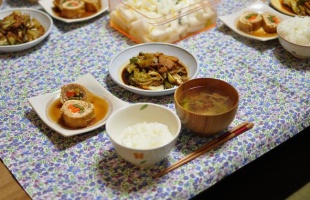 八丁味噌でホイコーロー、ゴキゲン笑顔のメイさん 昨日の12月16日金曜日の晩ごはん*ホイコーロー*信田巻き*セロリと茶色のえのきのスープ*柚子大根少し前に(長野に行くより何週間か前)自分で味噌煮込みうどんを作ろうと、赤みそを買ったのね(銀色のパッケージに入っているあれ)。で、休みの日のお昼に作ってみたんだ 2011年12月17日 カテゴリ:日々のつぶやき
