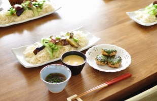 七夕さんの晩ごはんと、夏におすすめのメニュー公開! 昨日の7月7日七夕さんの晩ごはん*七夕素麺(ひらひら胡瓜、ローストビーフ、おくら、ナスのアレ)にタレを2種*大葉のつくねい、いやね・・・言い訳をさせてもらうならば昨日は兄さんはバイト、オットは飲み会でつまり女子3人だけの晩ごはんだったはずなんだよ。午後から卓 2014年07月08日 カテゴリ:お知らせ